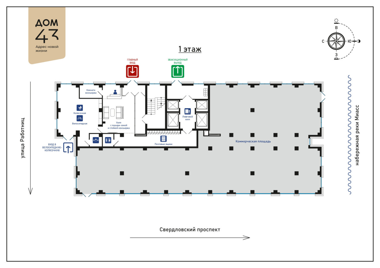 В шаговой доступности от набережной реки Миасс, уникальный проект, который сочетает в себе современную архитектуру, продуманный комфорт и все удобства мегаполиса.